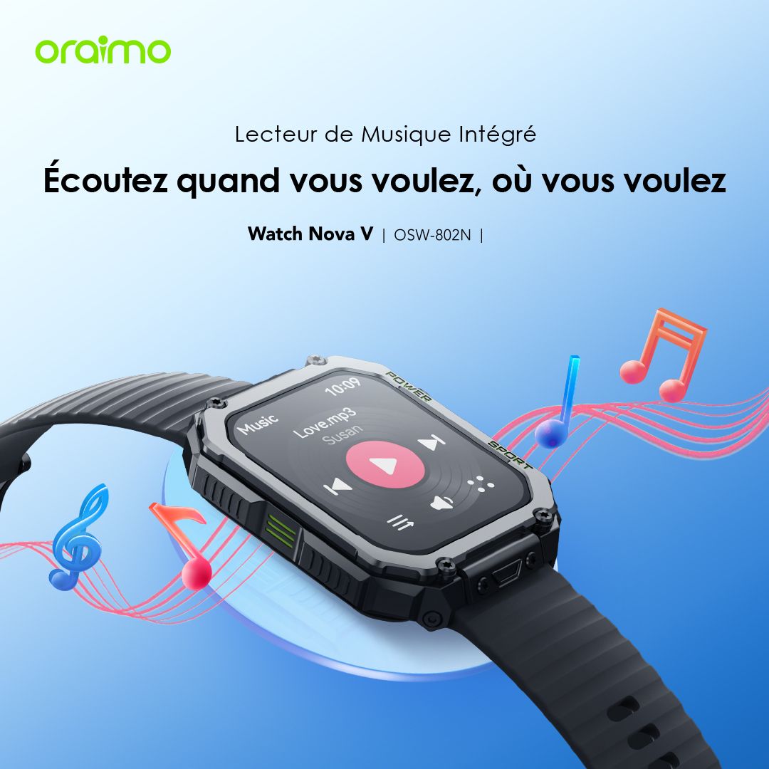 تدعم ساعة Watch Nova V الموسيقى المحلية والموسيقى التي تتم تشغيلها من خلال تطبيق oraimo Health على هاتفك.