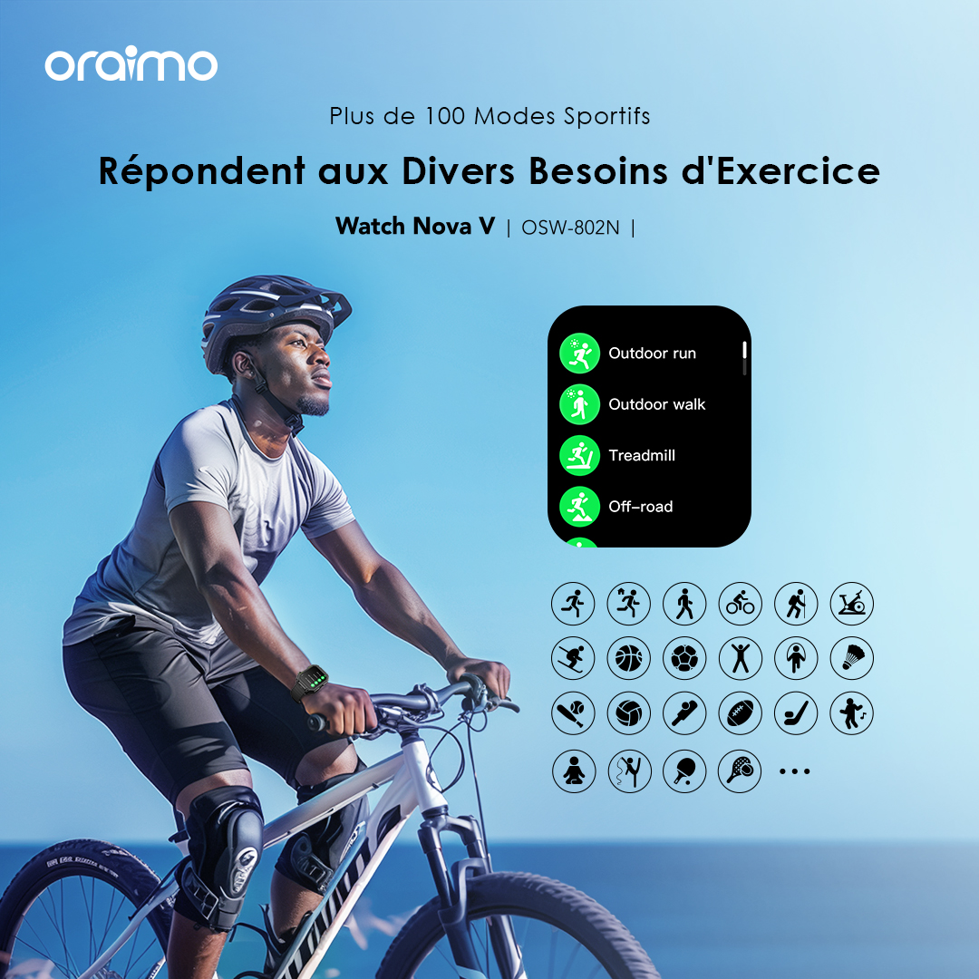 تتميز ساعة Watch Nova V بأكثر من 100 وضع رياضي مثل الجري في الهواء الطلق، والجهاز الرياضي، وركوب الدراجات، لتلبية احتياجات التمرين المتنوعة.