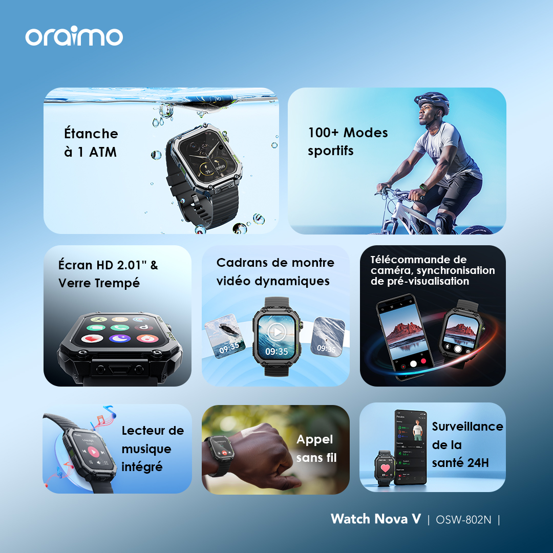يمكن لساعة Watch Nova V مزامنة صفحة التصوير مع الهاتف المحمول عبر تطبيق oraimo Health، مما يسمح بالتحكم في الكاميرا والمعاينة الفورية مباشرة على معصمك.