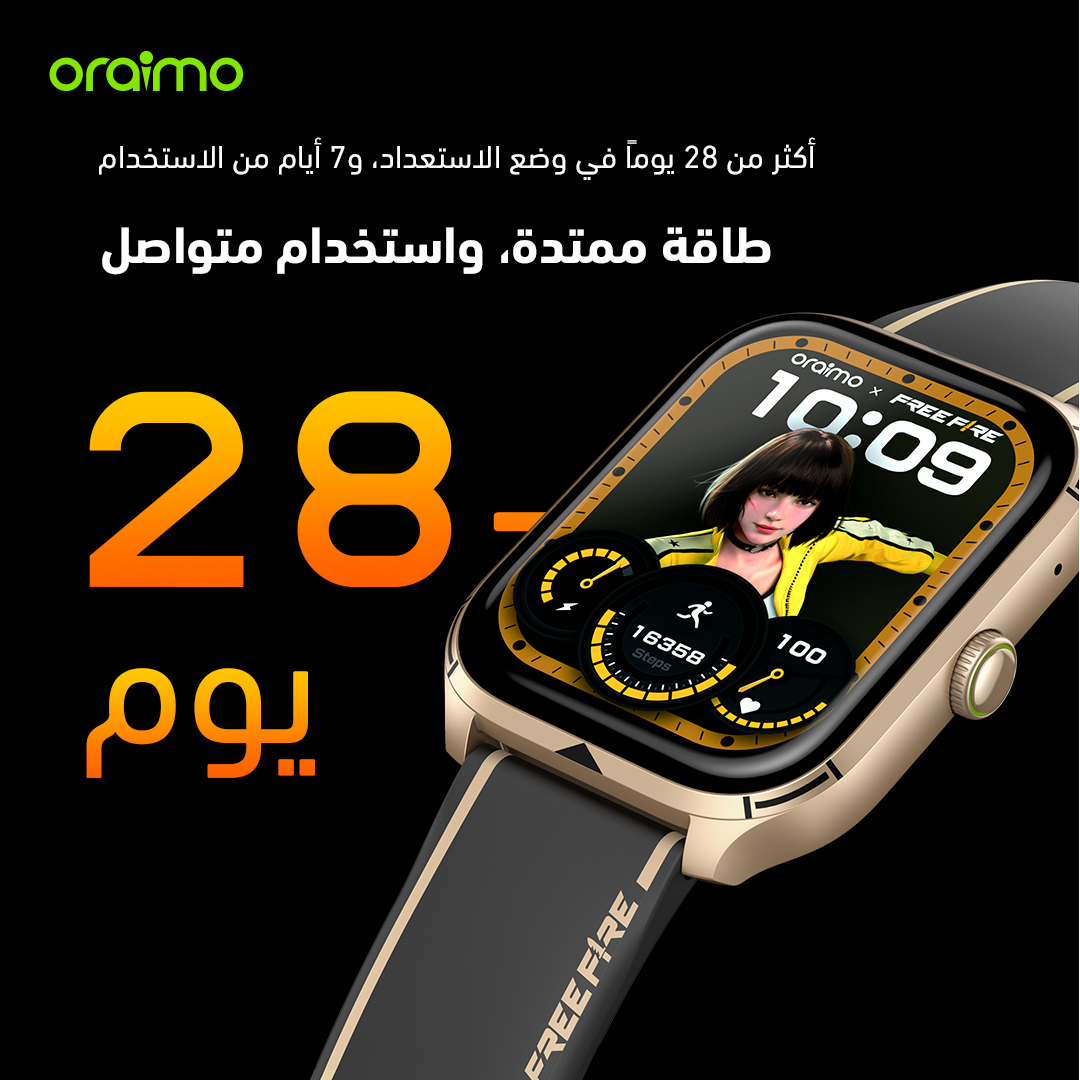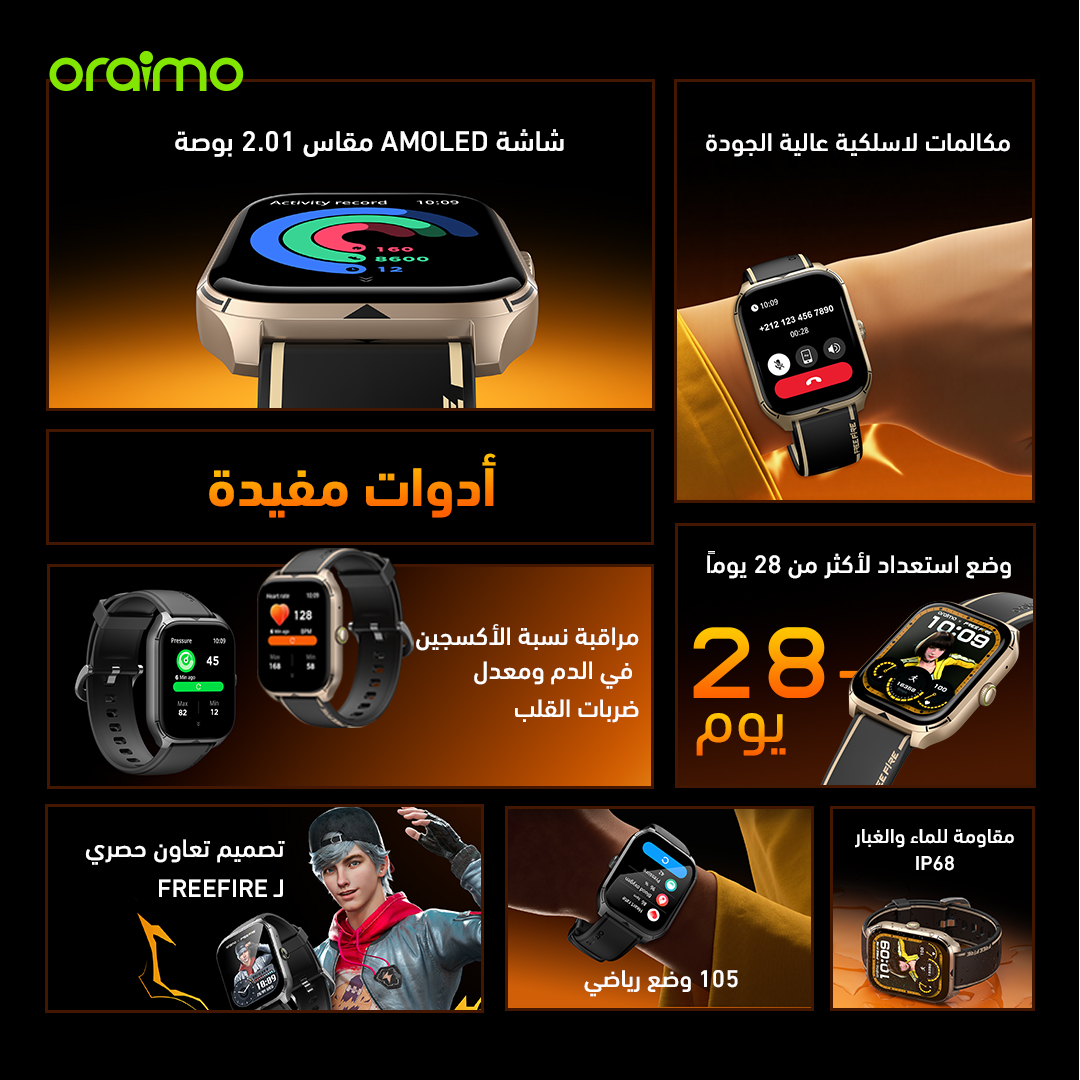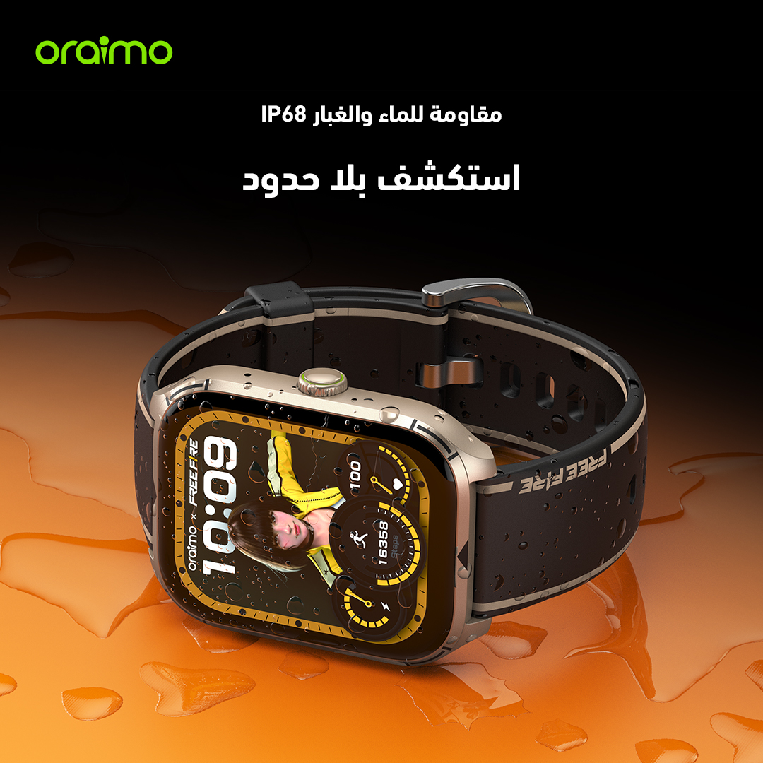oraimo Watch 5 Lite ساعة ذكية عالية الدقة IP68 مقاس 2.01 بوصة freefire