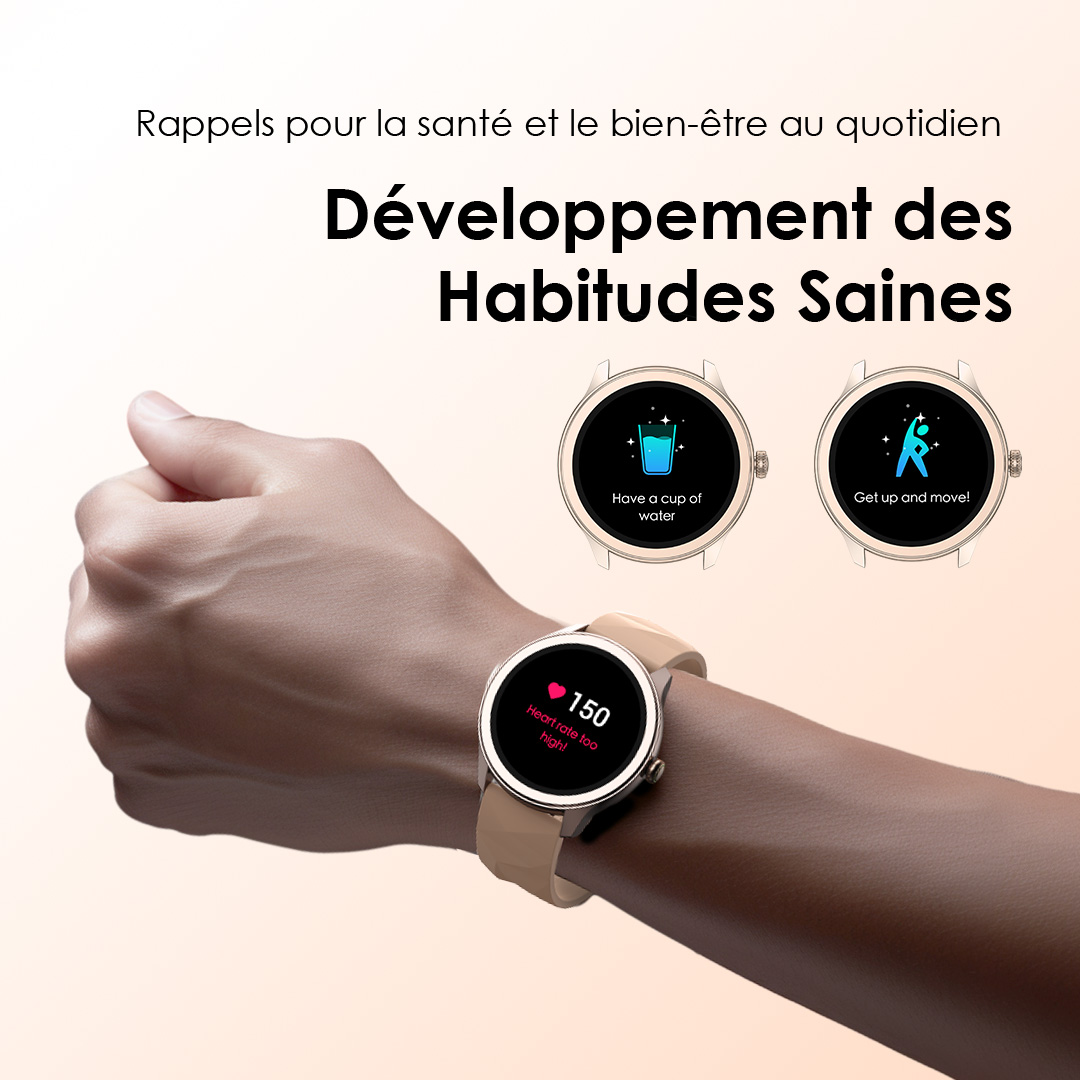 الساعة مجهزة بحزام سيليكون فائق النعومة وقابل للفصل مقاس 22 ملم. علاوة على ذلك، يقدم تطبيق oraimo Health أكثر من 150 نوعًا من وجوه الساعة، والتي يمكن أيضًا تخصيصها لعرض صورة فريدة من ألبومك.