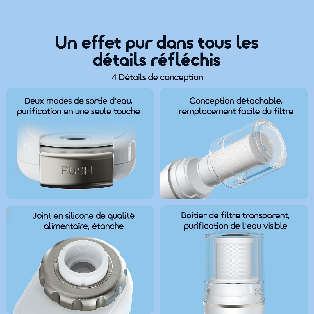 Répond facilement à tous vos besoins quotidiens en purification de l’eau grâce à une filtration efficace, un débit rapide, une compatibilité avec différents robinets et une installation simple.