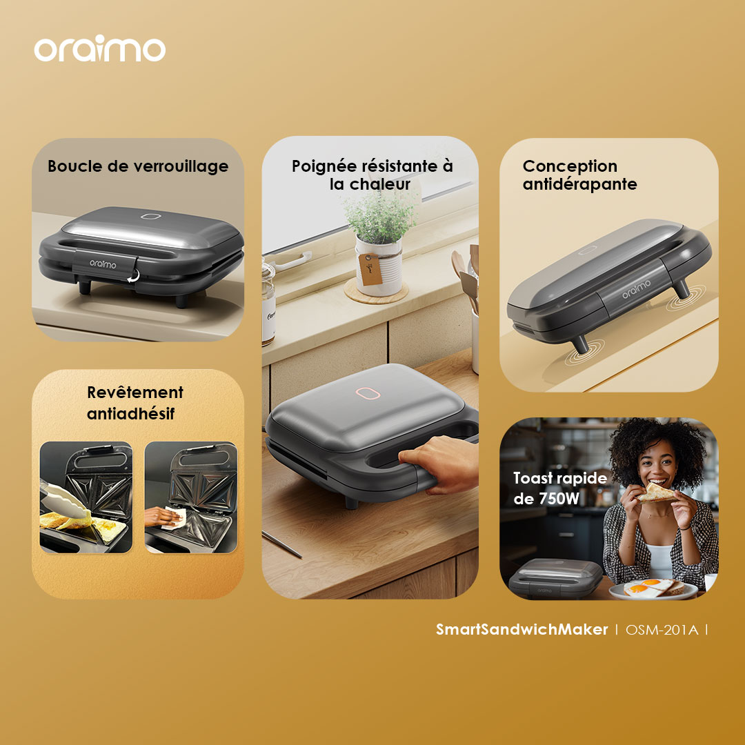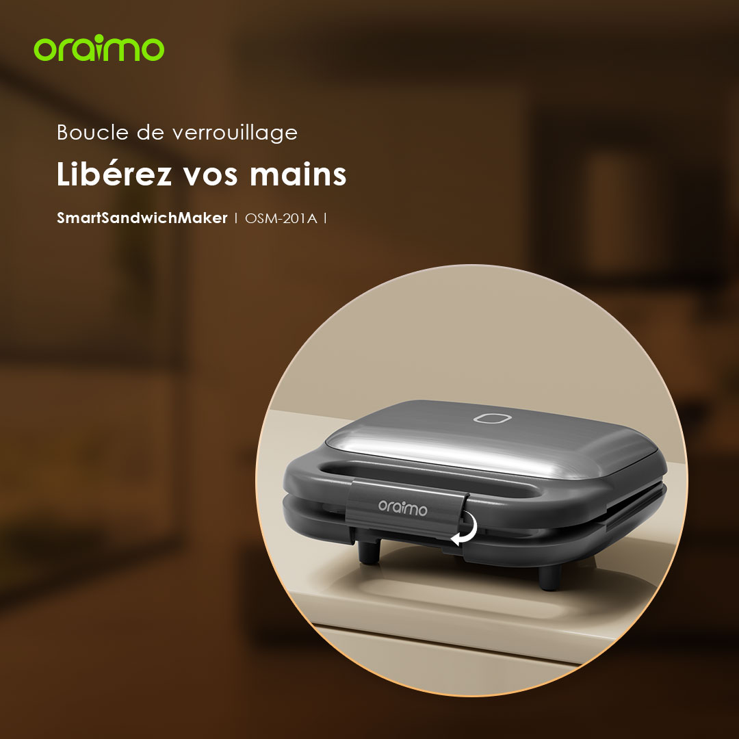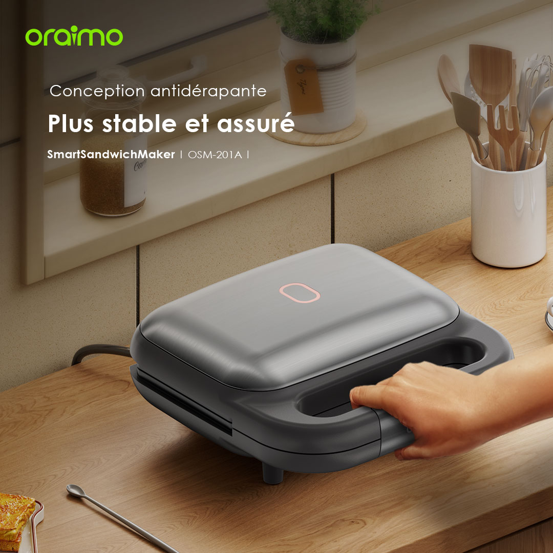 Les pieds antidérapants au bas de SmartSandwichMaker génèrent des frictions au contact du bureau, l'empêchant de basculer.