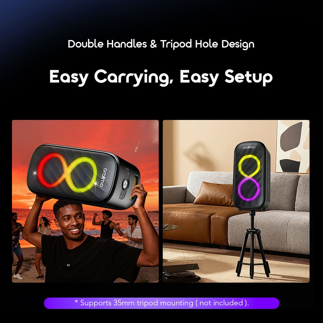 Carry it effortlessly to any venue with double handles, then mount it on a tripod for the perfect sound angle. From street performances to indoor parties, setup is always a breeze