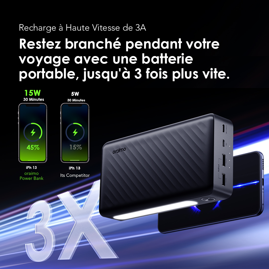 Équipé de la technologie de charge oraimo AniFast™, Traveler 3 Lit charge plusieurs appareils