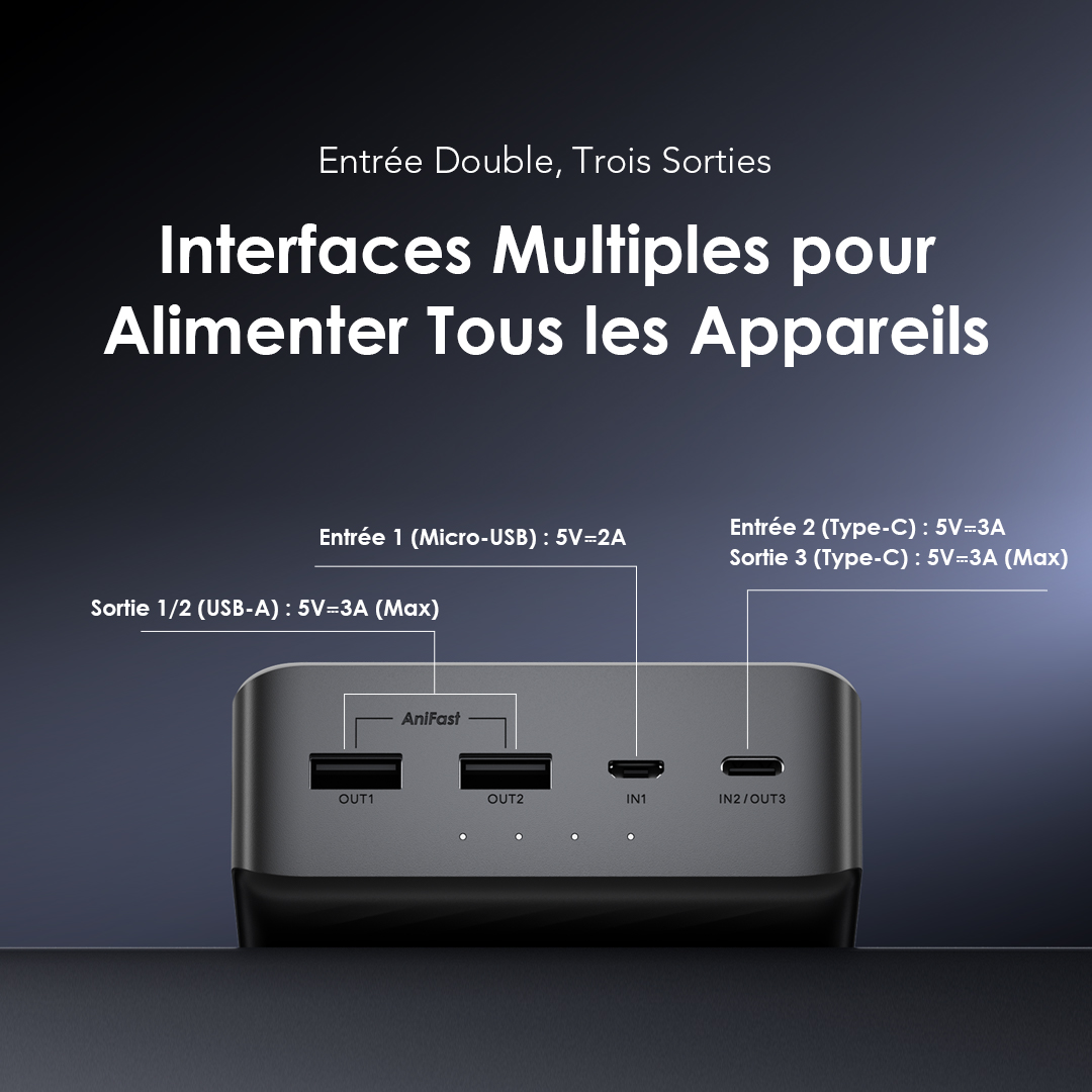 Sortie 1 (USB-A) : 5V 3A (Max)