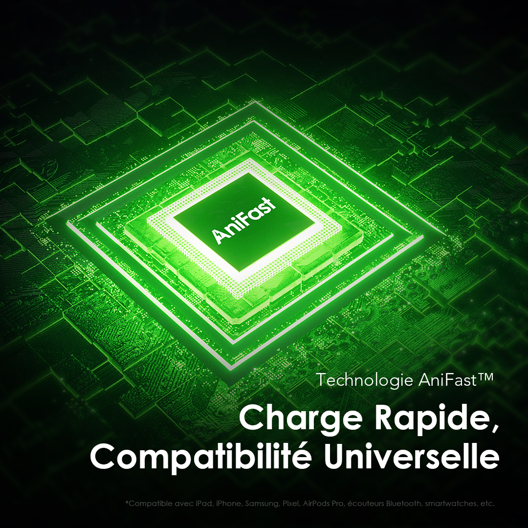 Équipé de la puce exclusive d'oraimo, le banc d'alimentation AniFast™ peut identifier intelligemment le protocole de charge rapide de vos appareils pour offrir la charge la plus rapide possible.