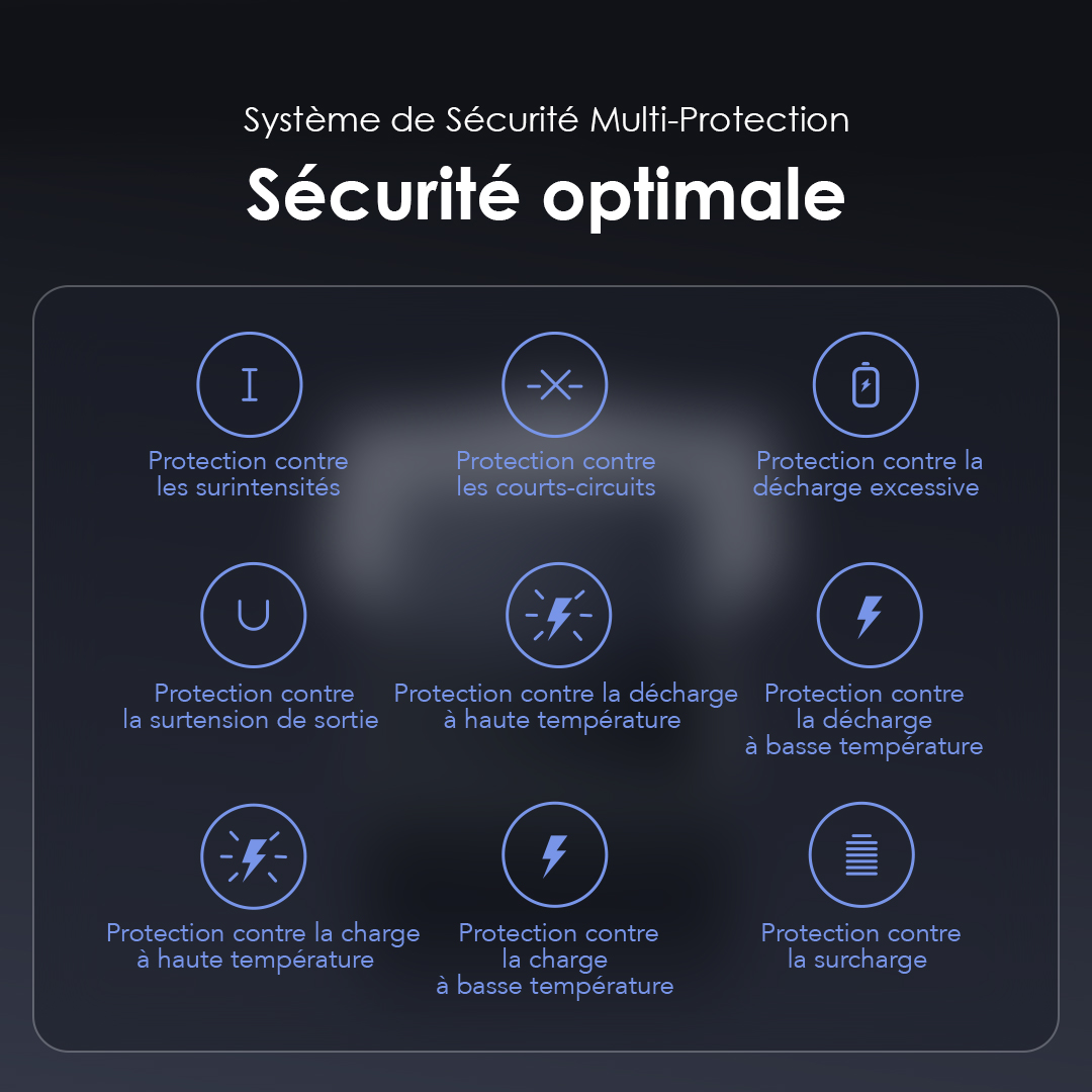 La batterie au lithium-polymère de première qualité est certifiée internationalement et sûre, garantissant un taux de conversion plus élevé, une tension stable et une protection fiable des circuits.