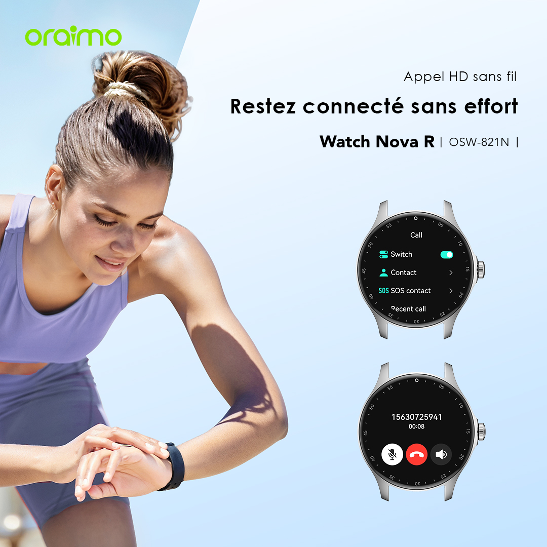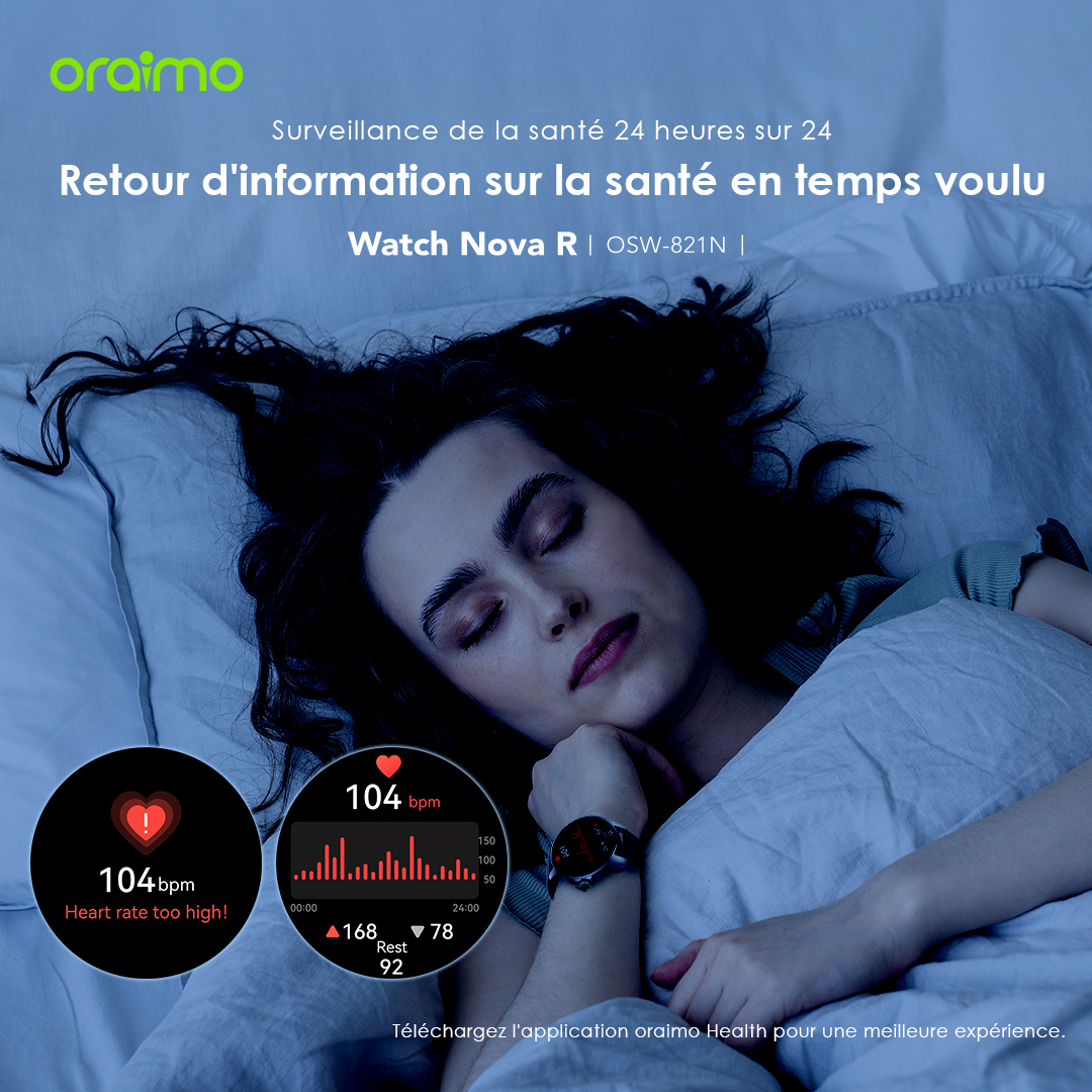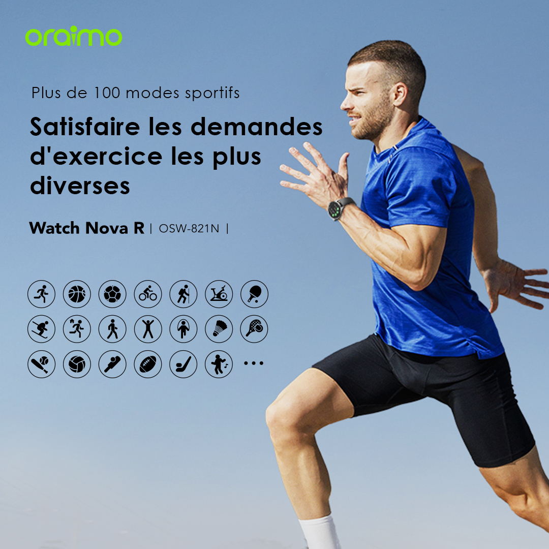 Fonction principale : pas de compteur, appel Bluetooth, fréquence cardiaque, oxygène dans le sang.