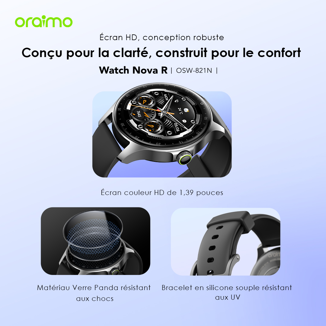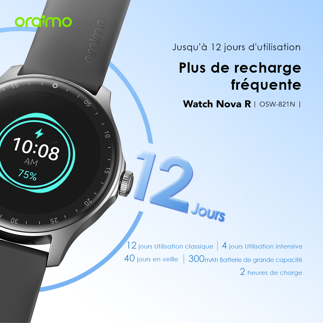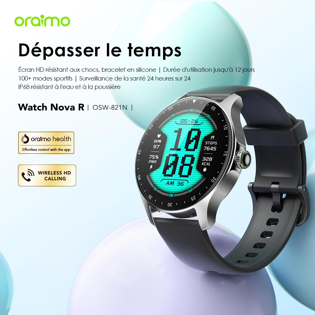 Fonction principale : pas de compteur, appel Bluetooth, fréquence cardiaque, oxygène dans le sang.