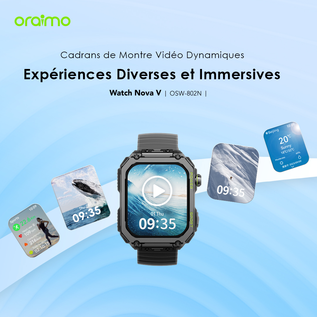 Watch Nova V offre une surveillance de la santé 24h/24, incluant des fonctions telles que les activités quotidiennes,