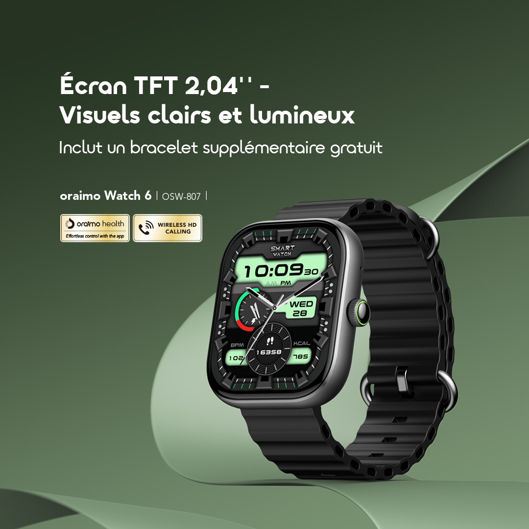Découvrez la Watch 6 avec des cadrans conçus par IA et plus de 120 designs disponibles sur l'application de santé oraimo.