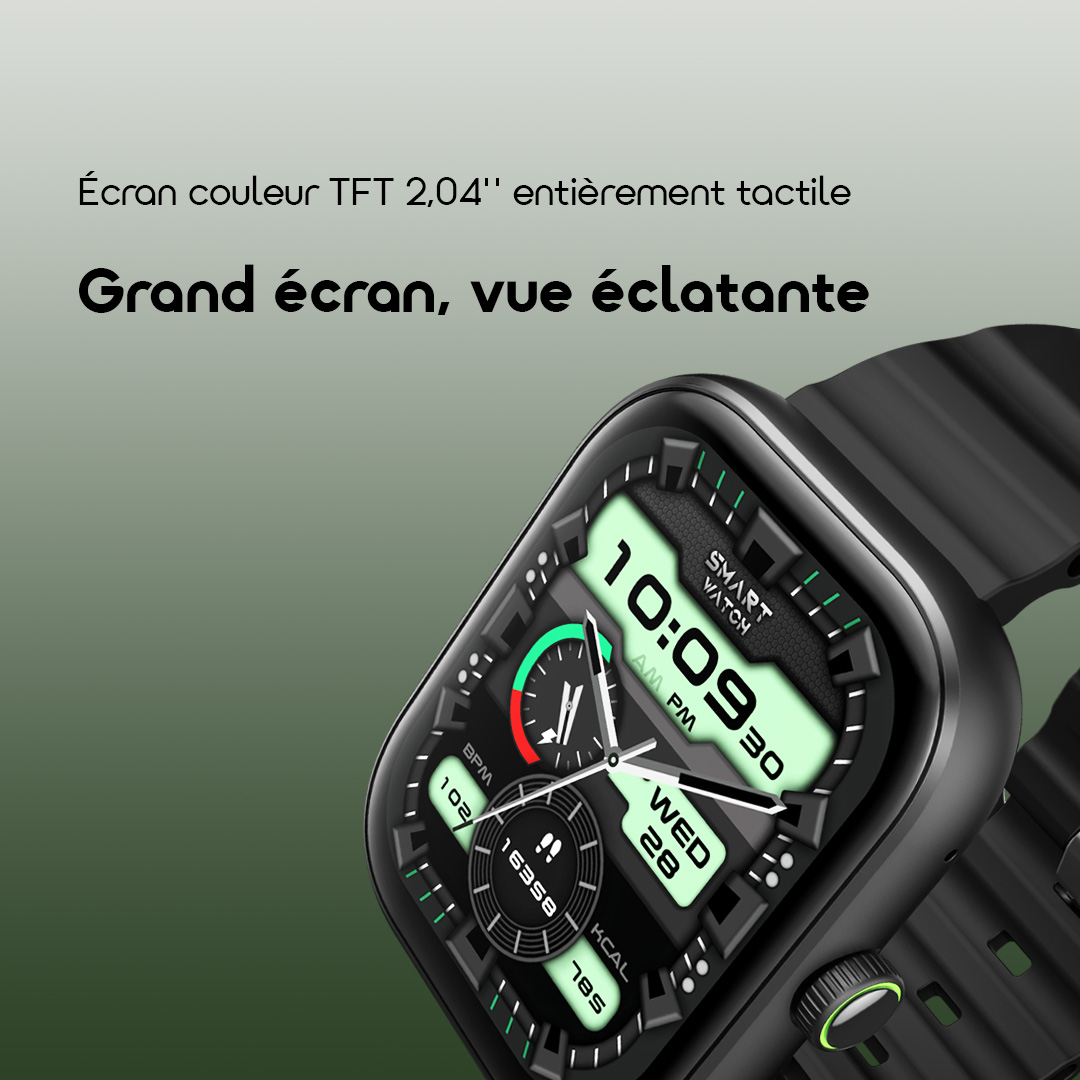 L'écran TFT de 2,04'' offre une clarté exceptionnelle, des cadrans de montre aux menus, chaque élément ressort avec des couleurs vives et des détails précis.