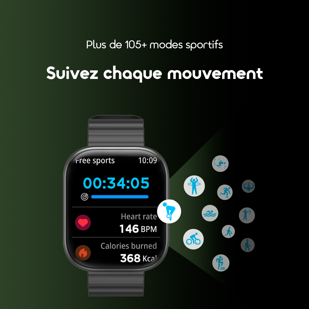 Profitez d’un confort et d’une commodité ultimes avec deux bracelets polyvalents. Changez facilement pour assortir votre tenue ou votre humeur, offrant un look renouvelé à chaque fois.