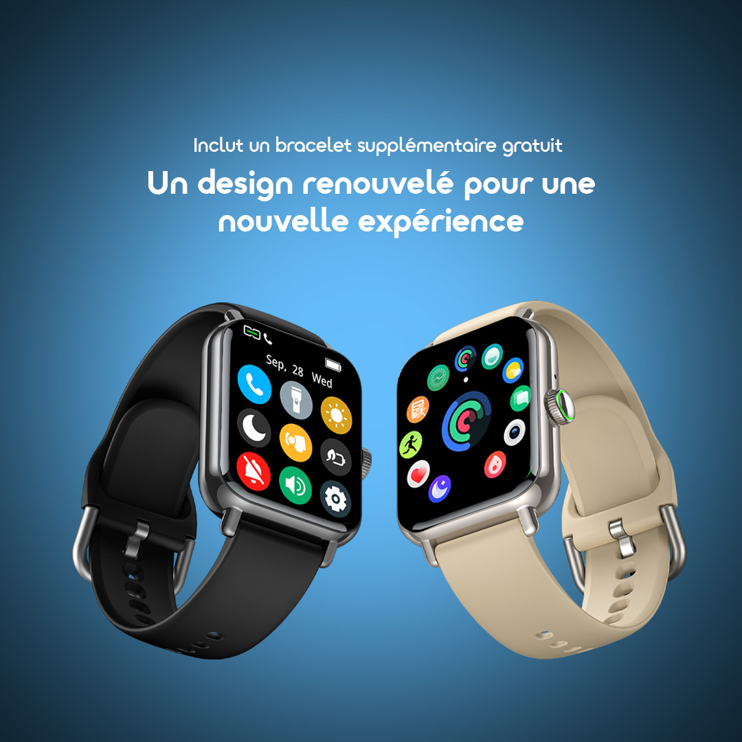 Profitez du confort et de la commodité grâce à deux bracelets polyvalents. Changez facilement pour assortir votre tenue ou votre humeur, offrant un nouveau look à chaque fois.