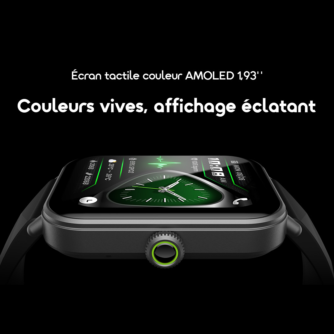 L'écran tactile AMOLED 1,93'' offre des couleurs éclatantes et une clarté haute résolution pour une expérience visuelle exceptionnelle.