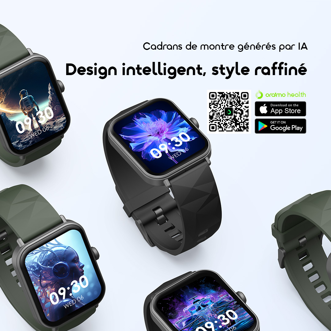 Découvrez la Watch Nova 2 Lite avec ses cadrans conçus par IA et plus de 120 styles disponibles sur l'application de santé oraimo.