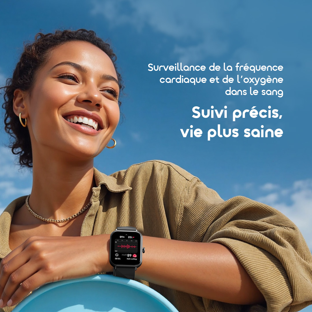 La Watch Nova 2 Lite surveille votre fréquence cardiaque, votre taux d’oxygène dans le sang, votre niveau de stress et votre sommeil pour vous garder informé et soutenir un mode de vie plus sain.